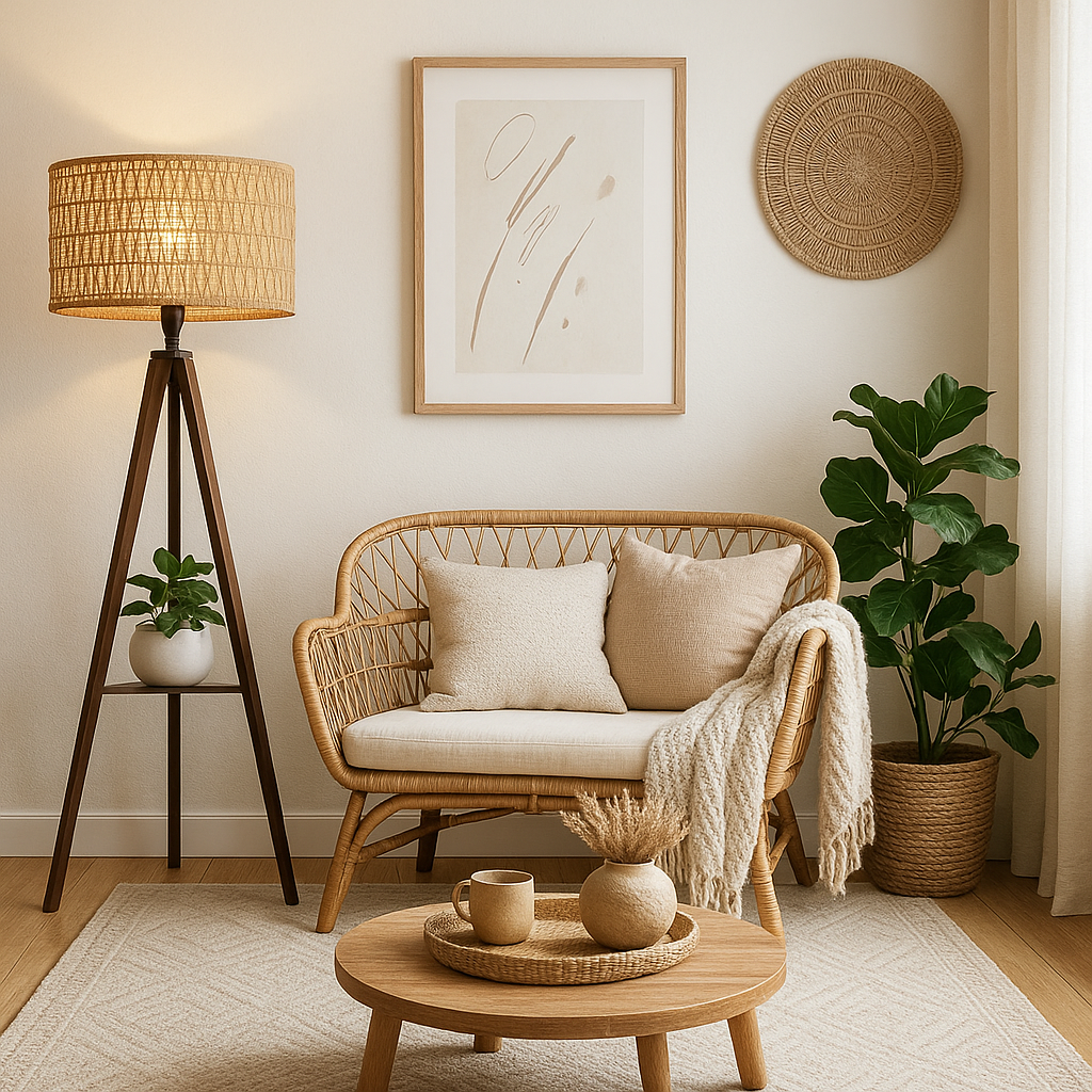 Le rotin est un matériau phare du style bohème. Une lampe en rotin arrondie, posée sur une table d’appoint, ajoute une vibe naturelle et décontractée. Elle est idéale pour un salon ou une entrée. Pour l’entretenir, dépoussiérez-la régulièrement avec un chiffon doux afin de préserver sa beauté naturelle.
